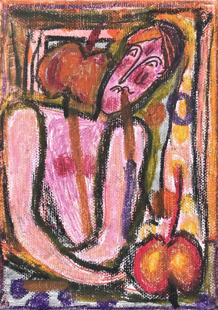tiny self portrait, 2019, 18 x 13 cm, Acryl, Marker und Ölkreide auf Leinwand