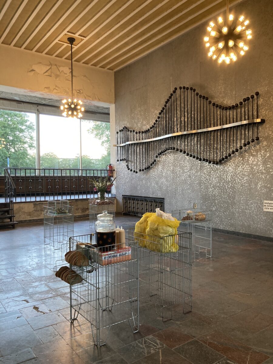 Installation: 5 Wühlkörbe, 5 Plakate