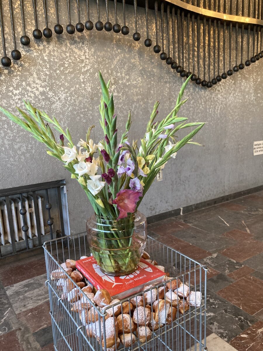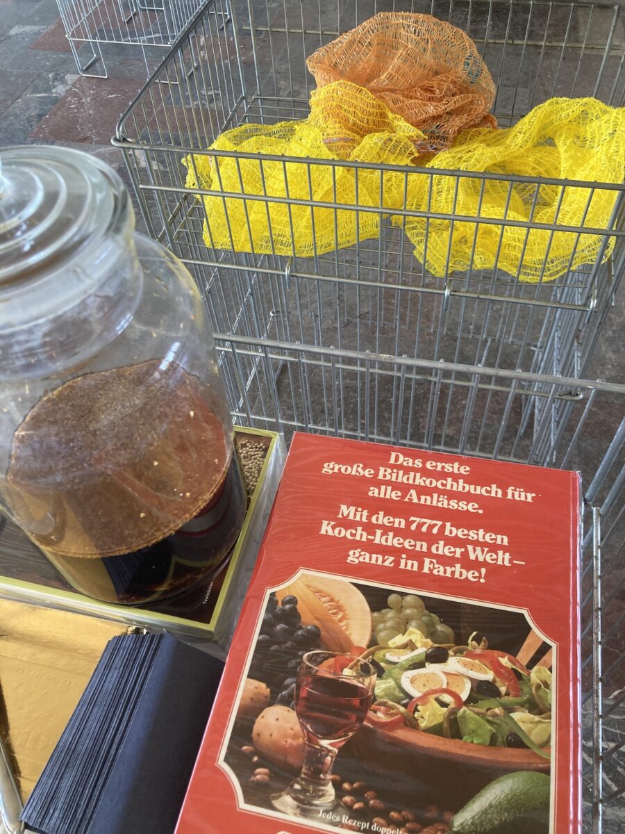 Omas Bowle, Gladiolen, diverse Kochbücher Fettgebäck mit Staubzucker