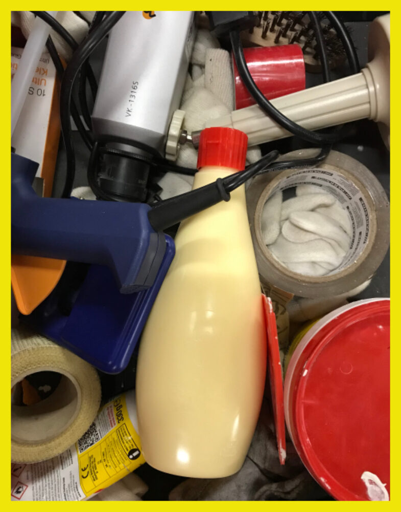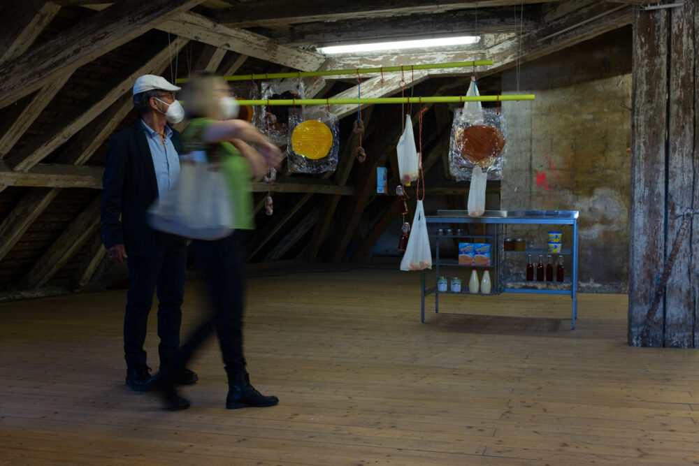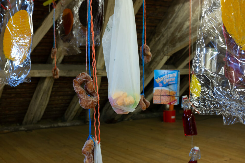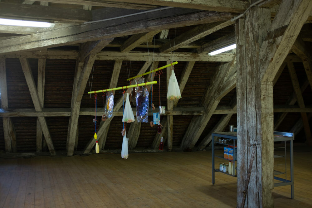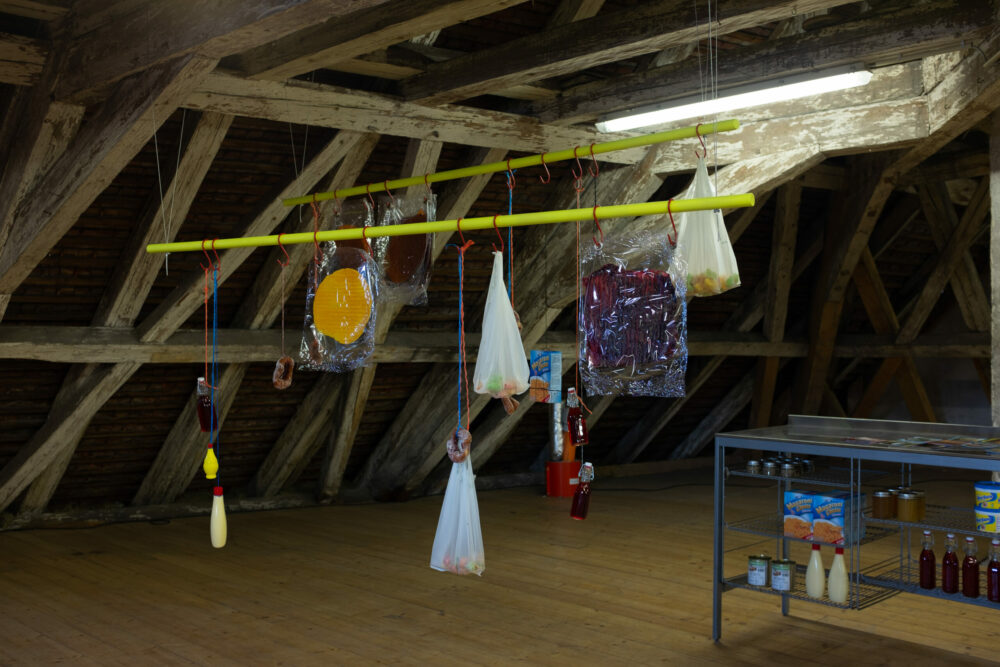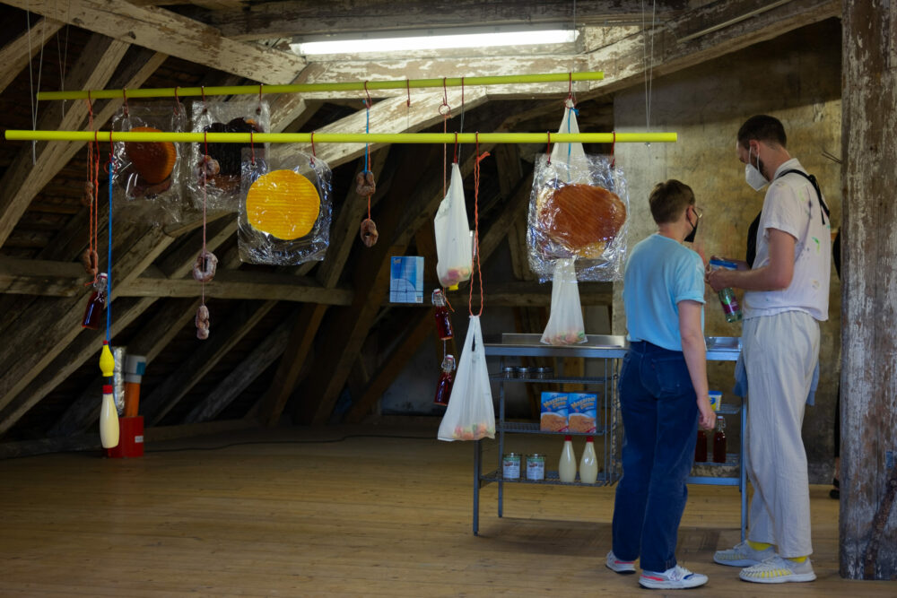 Als Geschenk der Künstlerin an die Besucher:innen konnte ein Objekt und eine dazugehörige Karte frei aus der Installation entnommen werden.